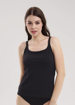Майка женская из эластичного хлопкового полотна. Широкая бретель. В боковом шве фирменный жаккардовый логотип.