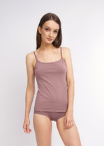 Майка женская из эластичного хлопкового полотна. Узкая бретель. В боковом шве фирменный жаккардовый логотип.