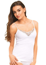 Майка классической длины на широких бретелях, декорирована кружевом по переду.
