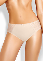 Бесшовные трусы бикини комфортной посадки. На детали спинки кружево на тело.