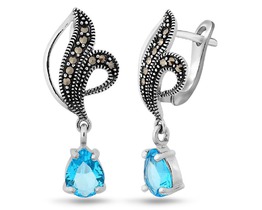 Серьги, арт.656495 Серебро Серебро 925, 7,47 гр., марказит , синт.топаз