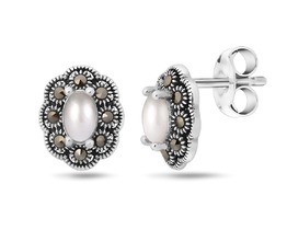 Серьги, арт.656511 Серебро Серебро 925, 1,88 гр., марказит , перламутр