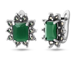Серьги, марказит , синт.изумруд, SL-AGA1549