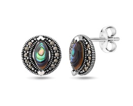 Серьги, арт.656512 Серебро Серебро 925, 2,3 гр., марказит , перламутр зелёный