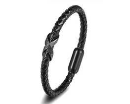 Браслет, кожа , сталь, ALB97чс