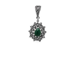Подвеска, зеленый агат , марказит, SL-AGA68
