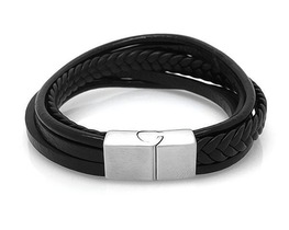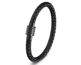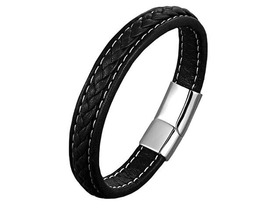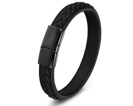 Браслет, кожа , сталь, ALB17ч/к