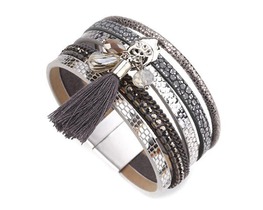 Браслет, арт.631407 Бижутерия 0, 0 гр., кожа , сталь , стекло