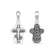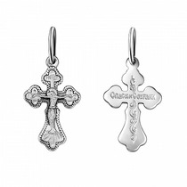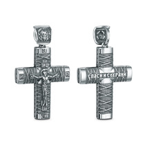 Крест из чернёного серебра - Рaспятие, Спаc Неpукотвоpный, Спаси и сохрани ПК-07
