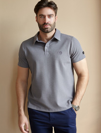 27.03 Vilatte Футболка-поло из фактурного трикотажа U49.047 серый